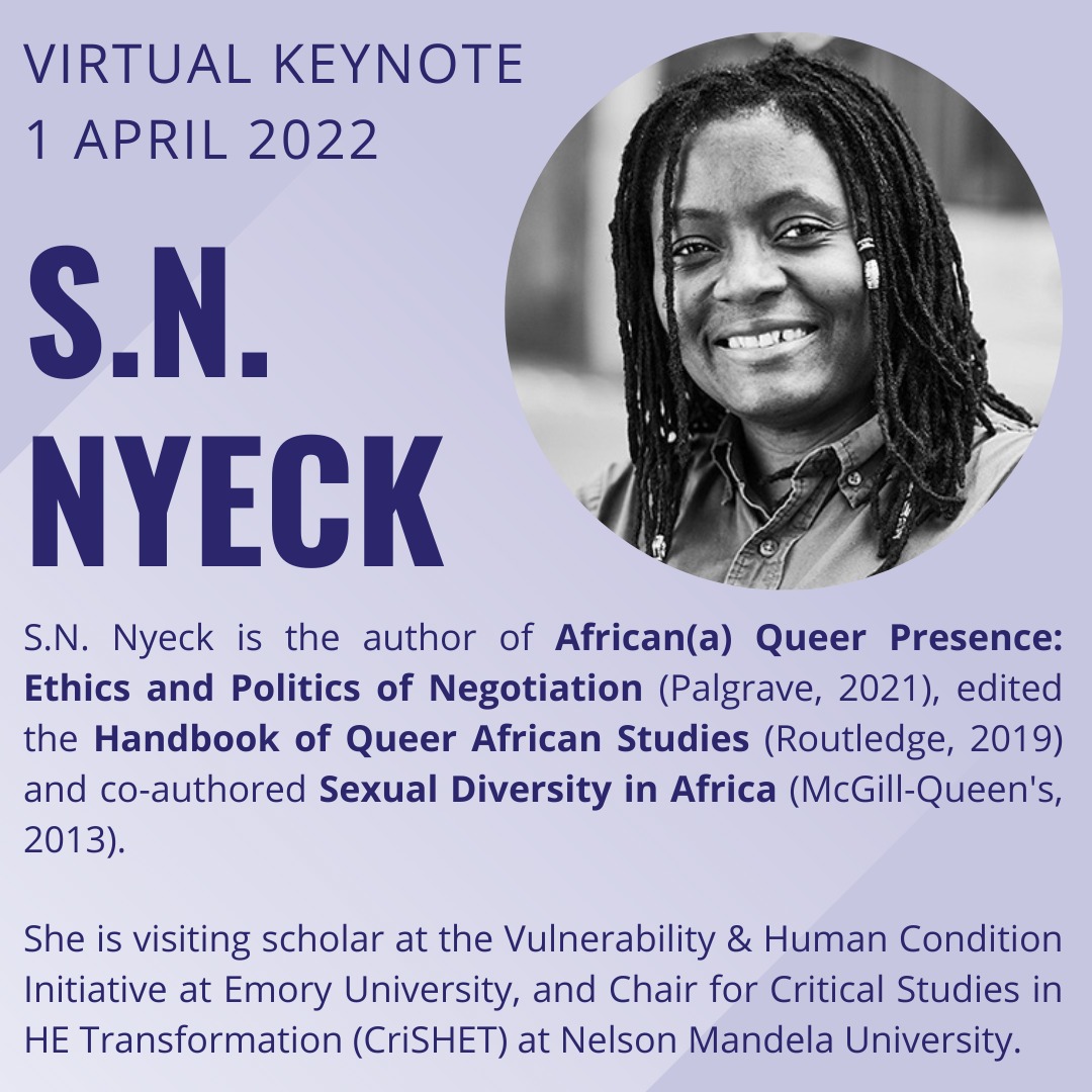 Dr. S.N. Nyeck, author of African(a) Queer Presence and the Routledge Handbook of African Queer Studies, virtual keynote